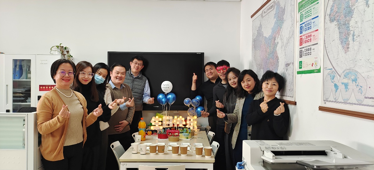 近日,国际交流与合作处工会小组在综合楼办公室322举办集体生日会活动。在忙碌的工作之余,全处10人在王锦处长带领下欢聚一堂,共庆2023年全处成员生日。各位“寿星”许下生日心愿,齐吹生日蜡烛,分享生日蛋糕,共话日常生活趣事,现场气氛轻松愉快,欢声笑语不断!