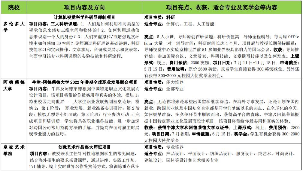 2022年暑期、秋季学期多伦多大学、阿德莱德大学及皇家艺术学院3所高校线上项目现开始报名,请有意愿同学关注相关通知。