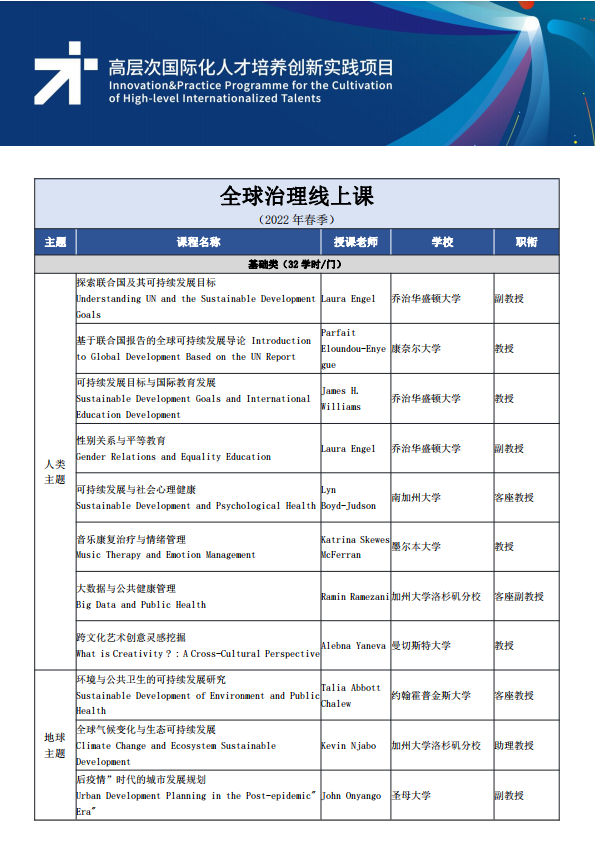 2022年春季学期国际组织人才项目全球治理在线开放课程选课工作即将开始,现将有关事宜通知如下: