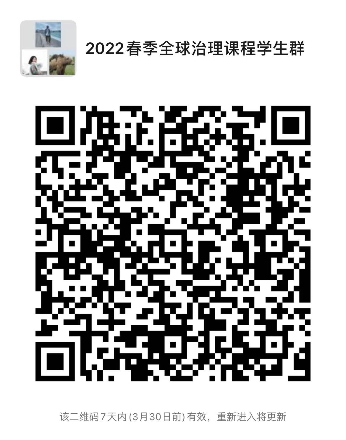 另:请获得推荐资格的同学扫描下方二维码加入北京林业大学2022年春季学期全球治理在线课程学生群(进群后请修改群昵称为“班级 姓名”);