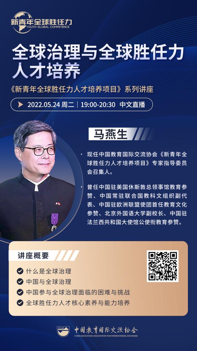 2022年《新青年全球胜任力项目》系列讲座第三场:全球治理与全球胜任力人才培养将于5月24日举行。本次系列讲座由教育部中外人文交流中心主办,我校作为国际组织人才培养基地成员单位之一,参与协助组织本次系列讲座。具体信息如下,请感兴趣的同学积极参加。
